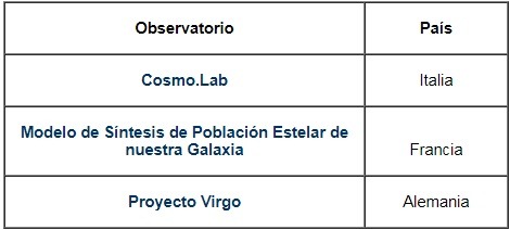 Tabla 1. Ejemplos de algunos Observatorios Virtuales Teóricos.