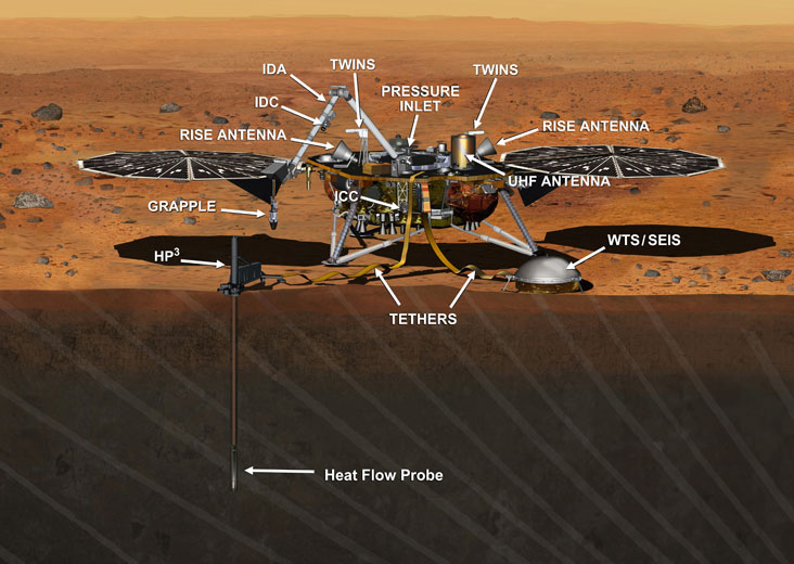 La nave espacial InSight de la NASA está diseñada para aterrizar en la superficie de Marte, donde estudiará el interior del planeta rojo y descubrirá cómo se formó ese mundo hace miles de millones de años. Originalmente, se suponía que el módulo de aterrizaje se lanzaría en 2016, pero la misión se retrasó después de que se detectó una fuga en uno de los instrumentos de la nave espacial. Ahora el instrumento, destinado a analizar terremotos en Marte, está arreglado y la nave espacial está casi lista para su viaje. El lanzamiento de InSight sobre un cohete Atlas V está planeado en algún momento dentro de una ventana de lanzamiento de 30 días que se abrirá el 5 de Mayo. Debería aterrizar en Marte unos siete meses después, el 26 de Noviembre.