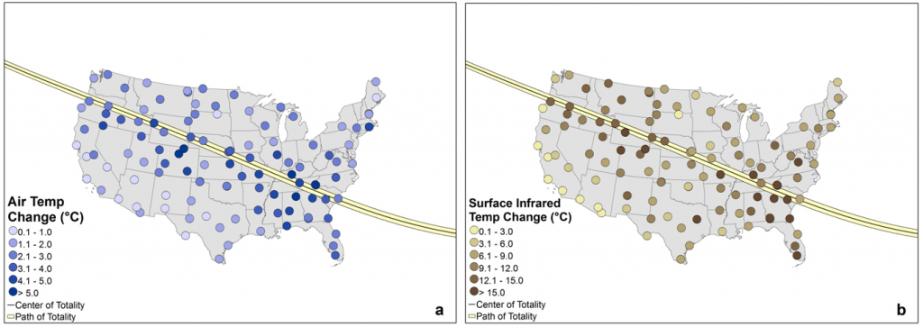Para nosotros, el “Great American Eclipse” fue un gran experimento controlado en un laboratorio del tamaño de un continente. Al igual que los resultados de cualquier experimento controlado de laboratorio, las mediciones del USCRN durante el eclipse, desde estaciones equipadas con conjuntos uniformes de instrumentos, capturaron un conjunto revelador de respuestas a un tipo de cambio en el sistema. El eclipse produjo ese cambio en una amplia gama de regiones geográficas, tipos de clima y porcentajes de totalidad.