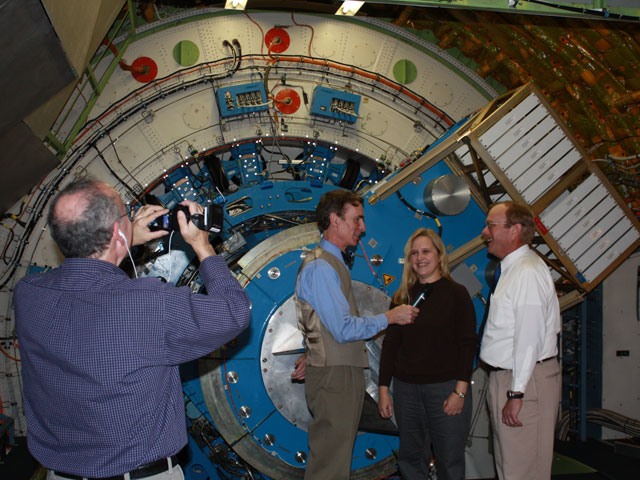 Mat Kaplan, productor de medios de la “Planetary Society”, graba un video mientras Bill Nye, The Science Guy, entrevista a Pam Marcum, científica principal de SOFIA y Bob Meyer, gerente del programa de SOFIA frente al telescopio infrarrojo de fabricación alemana montado dentro del avión Boening 747SP especialmente modificado. Crédito: NASA/Armstrong Flight Research Center/The Planetary Society. Más información. Ver una colección de 6 videos sobre SOFIA en You Tube.