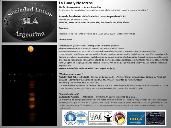 Se nos ha cursado invitáción a los integrantes de la asociación a asistir al lanzamiento de la “Sociedad Lunar Argentina”, en el mismo acto en que tomarán posesión de sus cargos las nuevas autoridades de la LIADA para el período 2019-2023.