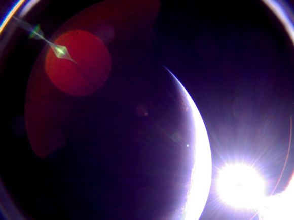 LightSail 2 capturó esta imagen de la Tierra el 7 de julio. Está mirando el mar Caribe hacia América Central, con el norte aproximadamente en la cima. El color azul-verde del océano alrededor de las Bahamas se puede ver en la posición de la 1:00 hrs. de la imagen. Un destello de lente es visible en la parte inferior derecha.