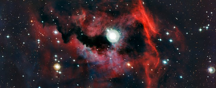 Colorida y tenue, esta intrigante colección de objetos se conoce como la Nebulosa de la Gaviota, llamada así por su parecido con una gaviota en vuelo. Compuesta de polvo, hidrógeno, helio y rastros de elementos más pesados, esta región es el lugar de nacimiento caliente y enérgico de nuevas estrellas. El notable detalle capturado aquí por el VLT Survey Telescope (VST) de ESO revela los objetos astronómicos individuales que componen el ave celestial, así como las características más finas dentro de ellos. El VST es uno de los telescopios topográficos más grandes del mundo que observa el cielo con luz visible. Ver video.