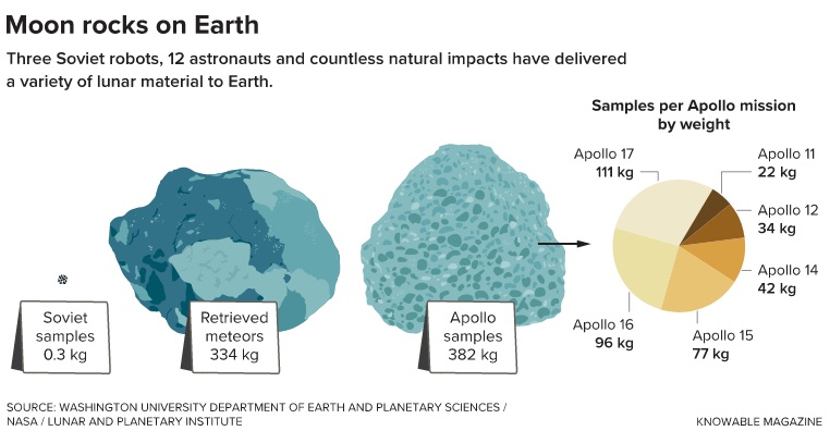 De 1969 a 1972, seis misiones Apolo recogieron 382 kilogramos de rocas y tierra. Esas muestras revelaron mucho sobre nuestro vecino cósmico, incluido su probable origen como “un pedazo de la Tierra”. Pero más allá de la comprensión de la propia Luna, las rocas lunares del Apolo tenían una historia de nuestro vecindario planetario, codificada en un lenguaje químico.