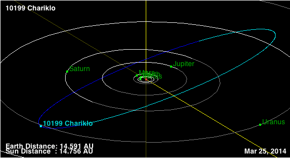 Órbita del Asteroide Cariclo, perteneciente al grupo de los Centauros. Crédito: NASA-JPL-Calthec.