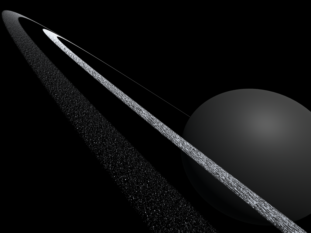 Figura 1: Esta visualización fue construida a partir de la simulación del doble anillo de Chariklo.